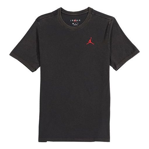 Air Jordan Back Printing Flying Man Retro Short Sleeve Distress Black AQ3735-010