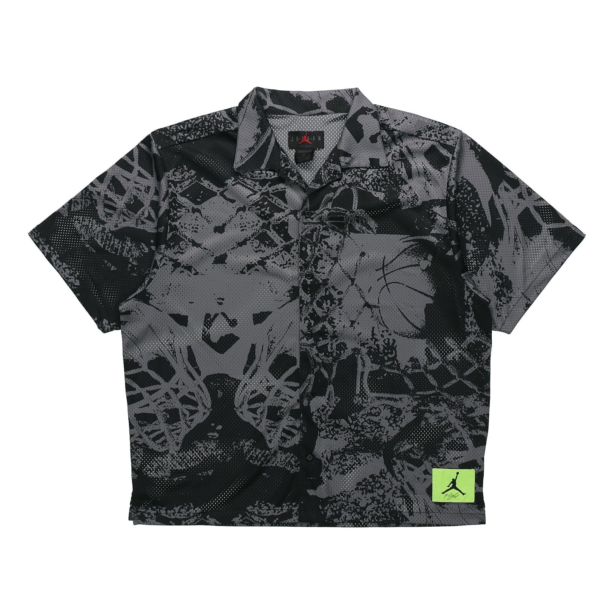 Air Jordan Flight Knitting Printing Wide Loose Basketball Short Sleeve Shirt Men's Black CZ4736-010