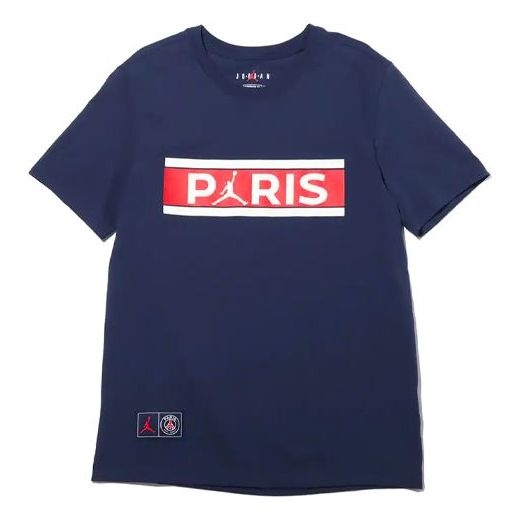 Air Jordan Wordmark Paris Saint-Germain Alphabet Printing Soccer/Football Sports Short Sleeve Navy B