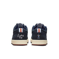 PRODUCT INFORMATION MODEL NO: DV1759-448 RELEASE DATE: 2022-11-11 SERIES: Air Jordan 1 NICKNAME: Out the Mud DESIGNER: Peter Moore THICKNESS: Regular Thickness UPPER MATERIAL: Leather CLOSURE: Lacing SOLE MATERIAL: Rubber Sole UPPER: Low Cut TOE TYPE: Round Toe HEEL TYPE: Flat heel COLOR WAY: MIDNIGHT NAVY/MIDNIGHT NAVY-BURNT SUNRISE-WHITE DESCRIPTION The Eastside Golf x Air Jordan 1 Low 'Out the Mud' is a stylish sneaker with a navy leather upper and a tongue with a satin lining. Special details include an Eastside Golf embroidered tongue and an insole with a grass and mud pattern. This sneaker also comes with a special edition packaging. The rubber sole provides a perfect balance between comfort and durability, making it suitable for a variety of activities. The design of this sneaker is inspired by the classic Air Jordan 1 silhouette, and the 'Out the Mud' colorway is a unique combination of midnight navy, burnt sunrise and white. This sneaker is a must-have for any Air Jordan fan.