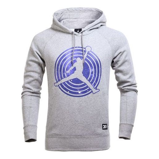 Men's Air Jordan 11 Fleece Po Casual Sports Fleece Lined Long Sleeves Printing Hooded Gray 823715-06