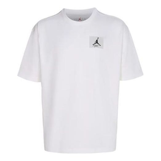 Men's Air Jordan Flight Essentials Solid Color Logo Label Loose Pullover Round Neck Half Sleeve Whit