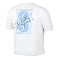 Men's Air Jordan Minimalistic Back Large Logo Printing Casual Round Neck Short Sleeve White Blue T-S