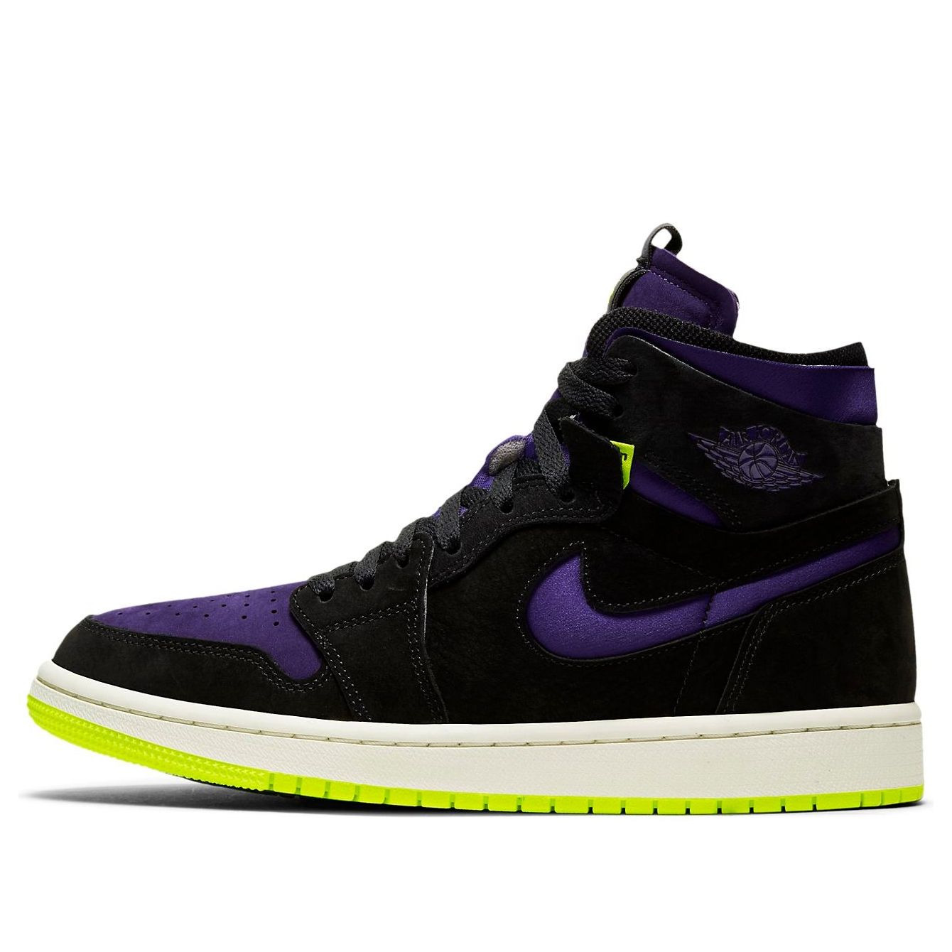 PRODUCT INFORMATION MODEL NO: CT0979-001 RELEASE DATE: 2020-10-28 SERIES: Air Jordan 1 NICKNAME: Halloween STYLE: Sports SEASON: All Season UPPER MATERIAL: Polyurethane/PU Leather SOLE MATERIAL: Rubber Sole TOE TYPE: Round Toe HEEL TYPE: Flat heel COLOR WAY: Black/Court Purple/Lemon Venom/Sail