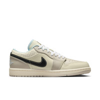 PRODUCT INFORMATION Model No: HQ3440-101 Closure: Lacing Release Date: 2024-09-24 Upper Material: Leather Thickness: Regular Sole Colorway: Sanddrift/Black/Muslin/Glacier Blue/Coconut Milk Toe Type: Round Toe Upper: Low Top Sole Material: Rubber Sole Color: beige Series: Air Jordan 1 Sub Series: Air Jordan 1 Low Nickname: Sanddrift Occasion: lifestyle The Air Jordan 1 Low "Sanddrift" offers a fresh perspective on a timeless classic, seamlessly blending understated elegance with the iconic design that has cemented the Air Jordan 1 as a sneaker icon. This iteration presents a refined, minimalist aesthetic, dominated by a soft sanddrift hue that exudes subtle sophistication. The upper is crafted from a harmonious blend of smooth leather and synthetic materials, creating a visually appealing texture. Elevating the design further are the intricately woven collars and the luxurious touch of pebbled leather Swooshes, adding a touch of refinement to the overall aesthetic. The Air Jordan 1 Low "Sanddrift" prioritizes both comfort and functionality, ensuring an optimal wearing experience. A cushioned midsole delivers exceptional support and impact protection, making these sneakers as comfortable for everyday wear as they are stylish. Meanwhile, the perforations strategically placed on the toe box enhance breathability, keeping your feet cool and dry even during extended wear. The "Sanddrift" effortlessly bridges the gap between heritage style and modern comfort, making it an ideal choice for sneaker enthusiasts and casual wearers who appreciate a touch of understated luxury in their footwear rotation.