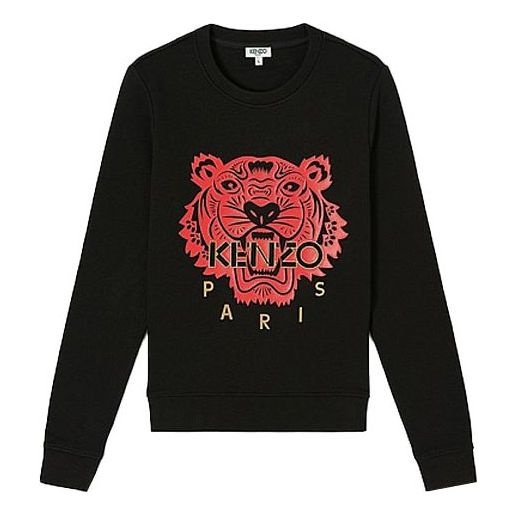 (WMNS) KENZO Tiger Head Cozy Round Neck Long Sleeves Hoodie Black FA52SW7054Z5-99