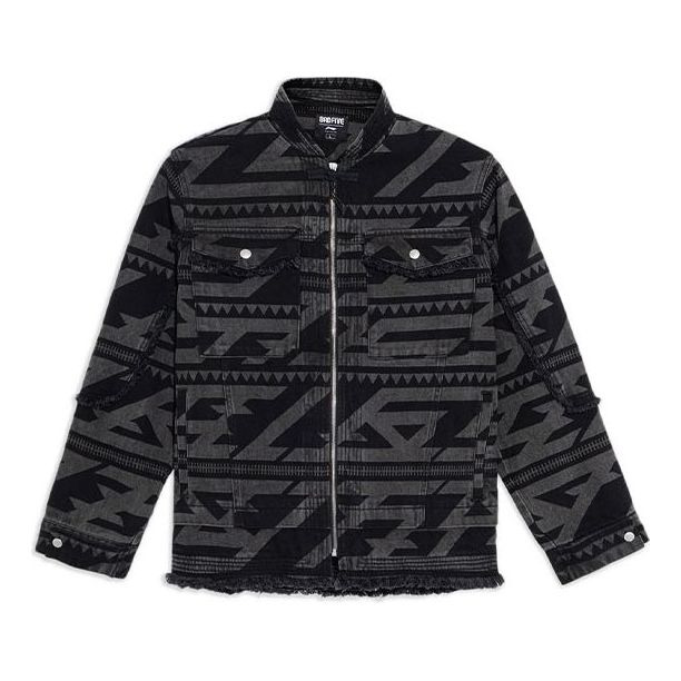 Li-Ning BADFIVE Series Full Print Loose Washed Denim Jacket 'Black Grey' AJDS037-1