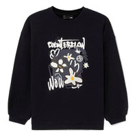 Li-Ning CF Sports Fashion Series Flowers Alphabet Printing Loose Fleece Lined Round Neck Pullover Ho