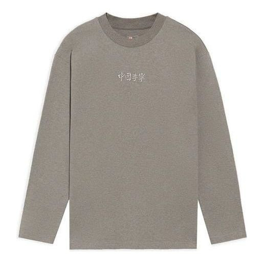 Li-Ning Embroidered Loose Round Neck Long Sleeves Top 'Brown Grey' AHSS130-2