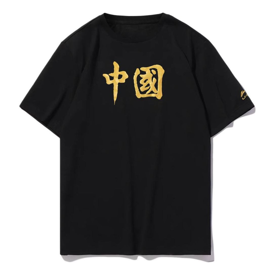 Li-Ning Printing Loose Sports Round Neck Short Sleeve 'Black' AHSS521-1