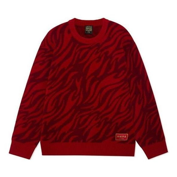 Li-Ning Rijindoujin Tiger Print Logo Crew Neck Sweater 'Red' AMBS031-3