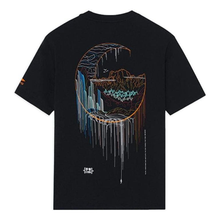 Li-Ning SS22 Stylish Logo Printing Loose Round Neck Short Sleeve T-Shirt 'Black' AHSS151-2