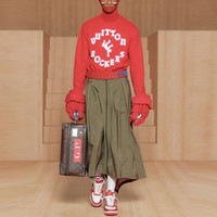 Men's LOUIS VUITTON SS22 Alphabet Pattern Printing Round Neck Long Sleeves Red 1A9T6K