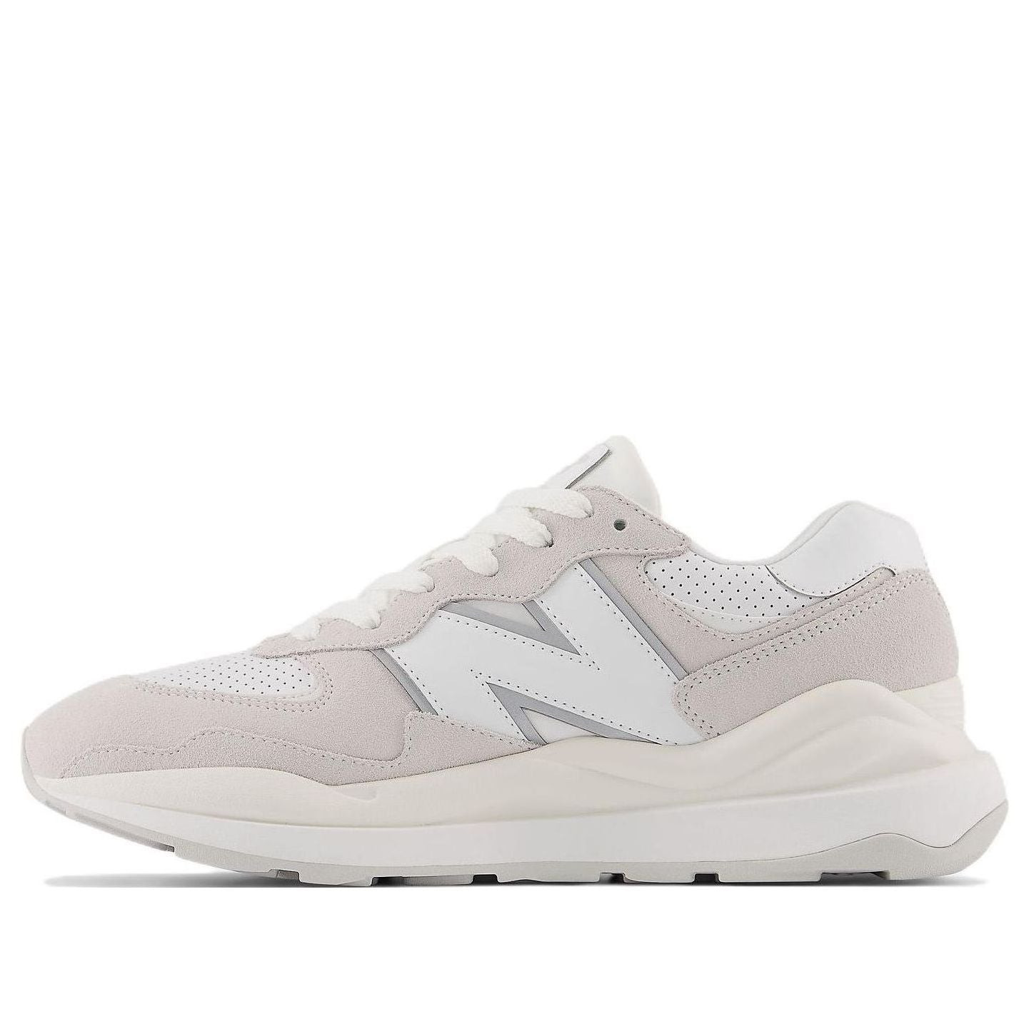 PRODUCT INFORMATION MODEL NO: M5740SL1 RELEASE DATE: 2022-09-30 SERIES: New Balance 57/40 NICKNAME: White Sea Salt THICKNESS: Regular Thickness UPPER MATERIAL: Fabric/ Leather CLOSURE: Lacing SOLE MATERIAL: Rubber Sole UPPER: Low Cut TOE TYPE: Round Toe HEEL TYPE: Flat heel COLOR WAY: GRAYWHITE
