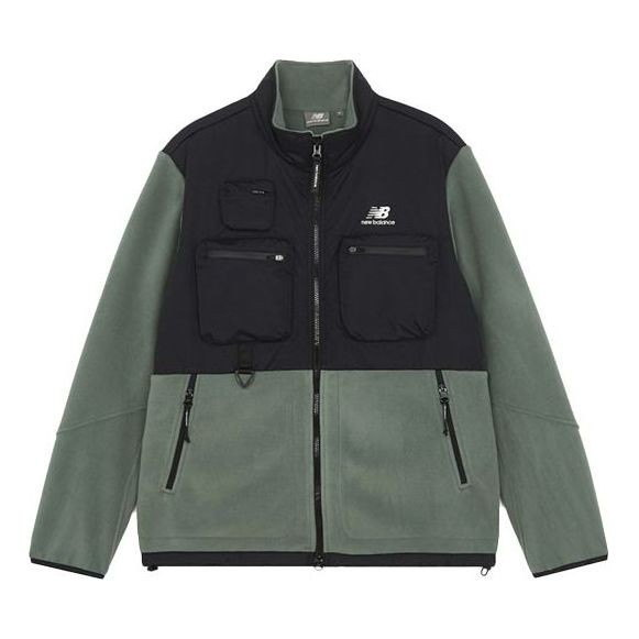 New Balance Colorblock logo Sports Stand Collar Polar Fleece Jacket Black Green 6DB42133-KH