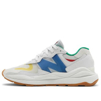 PRODUCT INFORMATION Model No: M5740SR Closure: Lacing Release Date: 2021-10-25 Upper Material: Leather Thickness: Regular Sole Style: Sports Colorway: White/Blue/Yellow Toe Type: Round Toe Upper: Low Top Sole Material: Rubber Sole Functionality: Wearable/Slip-resistant Season: All Season Color: WHITE Series: New Balance 57/40 Nickname: White Blue Quartz Occasion: lifestyle The STAUD x New Balance 57/40 'White Blue Quartz' is a fresh new take on the classic runner. The upper is constructed from white translucent textile with tonal leather overlays and contrasting yellow and crimson accents. The oversized 'N' logo in marine blue makes a bold statement, while the 'STAUD' imprinted on the suede heel tab and dual branding on the sockliner and woven tongue tag complete the look. The double-stacked foam midsole provides plush cushioning, while the grippy gum rubber outsole ensures a secure footing.