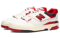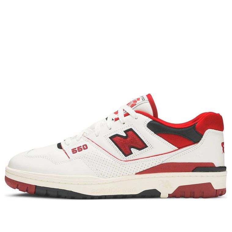 PRODUCT INFORMATION Model No: BB550AE1 Closure: Lacing Release Date: 2020-10-08 Upper Material: Leather Thickness: Regular Sole Style: Sports/Trendy/Retro Colorway: White/Red Toe Type: Round Toe Upper: Low Top Sole Material: Rubber Sole Season: All Season Color: red Series: New Balance 550 Nickname: Red Occasion: lifestyle The New Balance Aime Leon Dore x 550 'Red' is a classic basketball shoe that has been revived in collaboration with the New York-based menswear brand. This sneaker features an off-white leather upper with contrasting red and black accents, including a cracked leather 'N' logo on the quarter panel. Aime Leon Dore branding is featured on both tongue tags and the heel overlay of the left shoe. The pre-yellowed midsole amplifies the vintage look of the shoe.