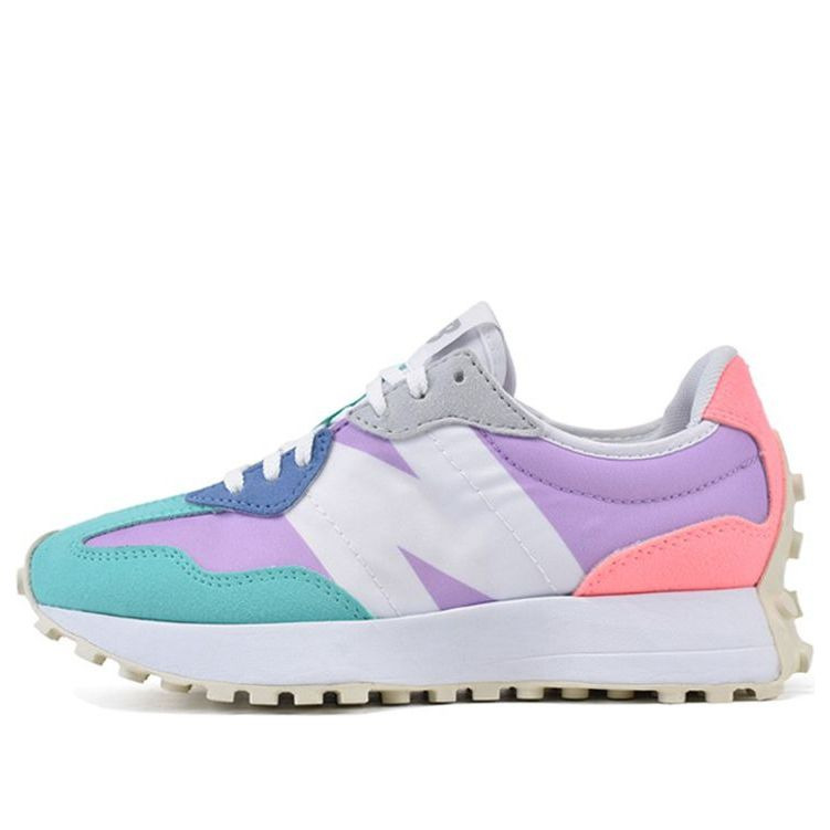 PRODUCT INFORMATION MODEL NO: WS327PA RELEASE DATE: 2021-04-18 SERIES: New Balance 327 NICKNAME: Dark Violet Summer Jade STYLE: Sports SEASON: All Season CLOSURE: Lacing SOLE MATERIAL: Rubber Sole TOE TYPE: Round Toe HEEL TYPE: Flat heel COLOR WAY: Green/Light Purple/Pink