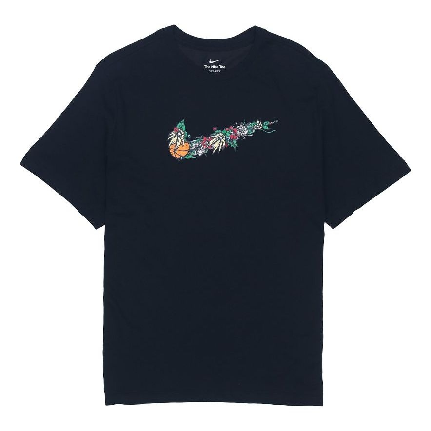 Men's Nike Flowers Large Logo Casual Sports Solid Color Round Neck Short Sleeve Black T-Shirt DV1215