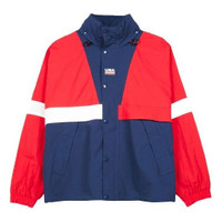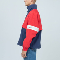 Men's Nike Lab Swoosh Stripe Splicing Storage Simple Colorblock Hooded Jacket Blue 'University Red M