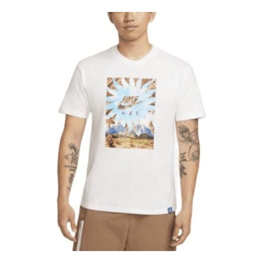Men's Nike Landscape Logo Printing Round Neck Casual Short Sleeve White T-Shirt DQ1020-100