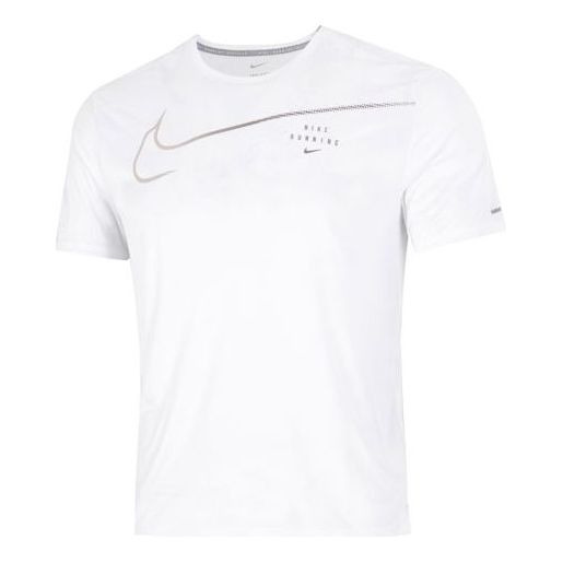 Men's Nike Large Logo Sports Training Breathable Quick Dry Round Neck Short Sleeve White T-Shirt DM4