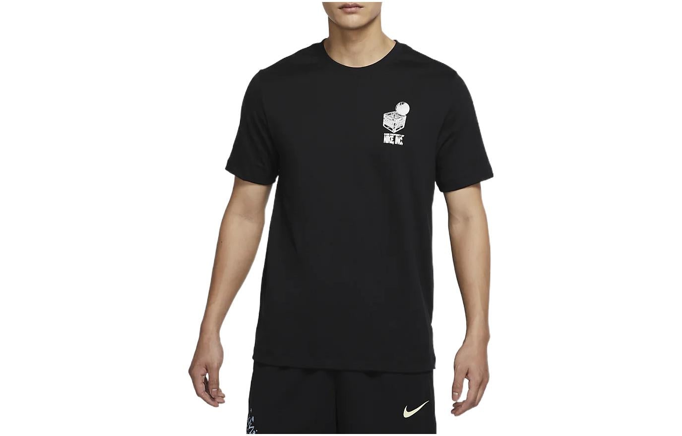 Men's Nike Logo Geometry Pattern Printing Round Neck Short Sleeve Black T-Shirt DR7638-010
