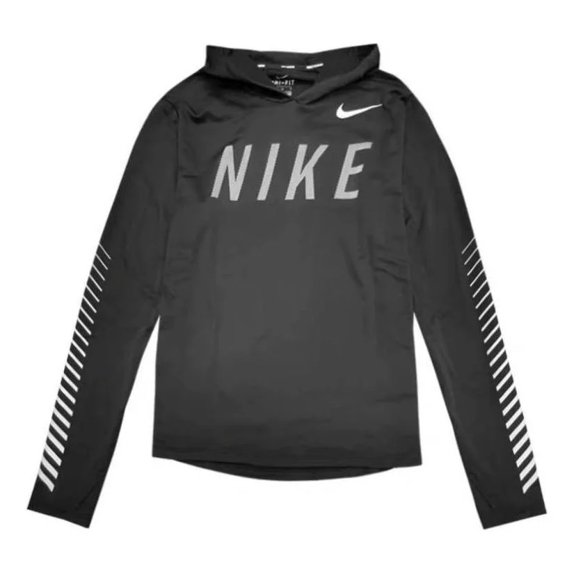Men's Nike Logo Printing Hooded Long Sleeves Reflective Black T-Shirt AQ4850-010