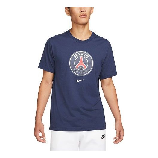 Men's Nike Paris Saint-Germain Crest Large team logo Printing Round Neck Casual Short Sleeve Blue DJ