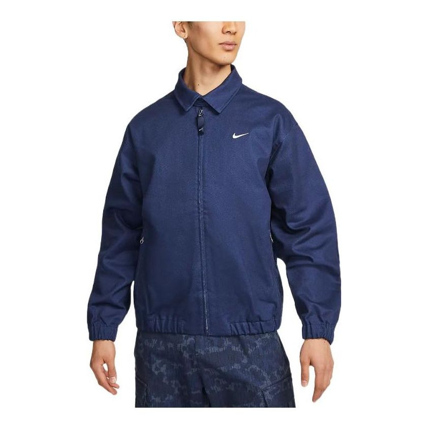 Men's Nike Solid Color Logo Casual Lapel Jacket Navy Blue DQ6335-410