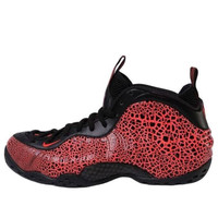 PRODUCT INFORMATION Model No: 314996-014 Closure: Lacing Release Date: 2020-01-18 Upper Material: Leather Thickness: Regular Thickness Style: Retro Colorway: Black/Brt Crimson-Total Crimson Toe Type: Round Toe Upper: Mid Top Sole Material: Rubber Sole Color: black Series: Air Foamposite Nickname: Cracked Lava Occasion: basketball Nike Air Foamposite One 'Cracked Lava' - It's all about the details with this basketball shoe. The iconic Foamposite shell is given a unique twist with a cracked lava design, while the black and red upper is accented with black leather detailing. A shank plate adds stability and a rubber outsole provides traction, making this shoe perfect for on-court action.