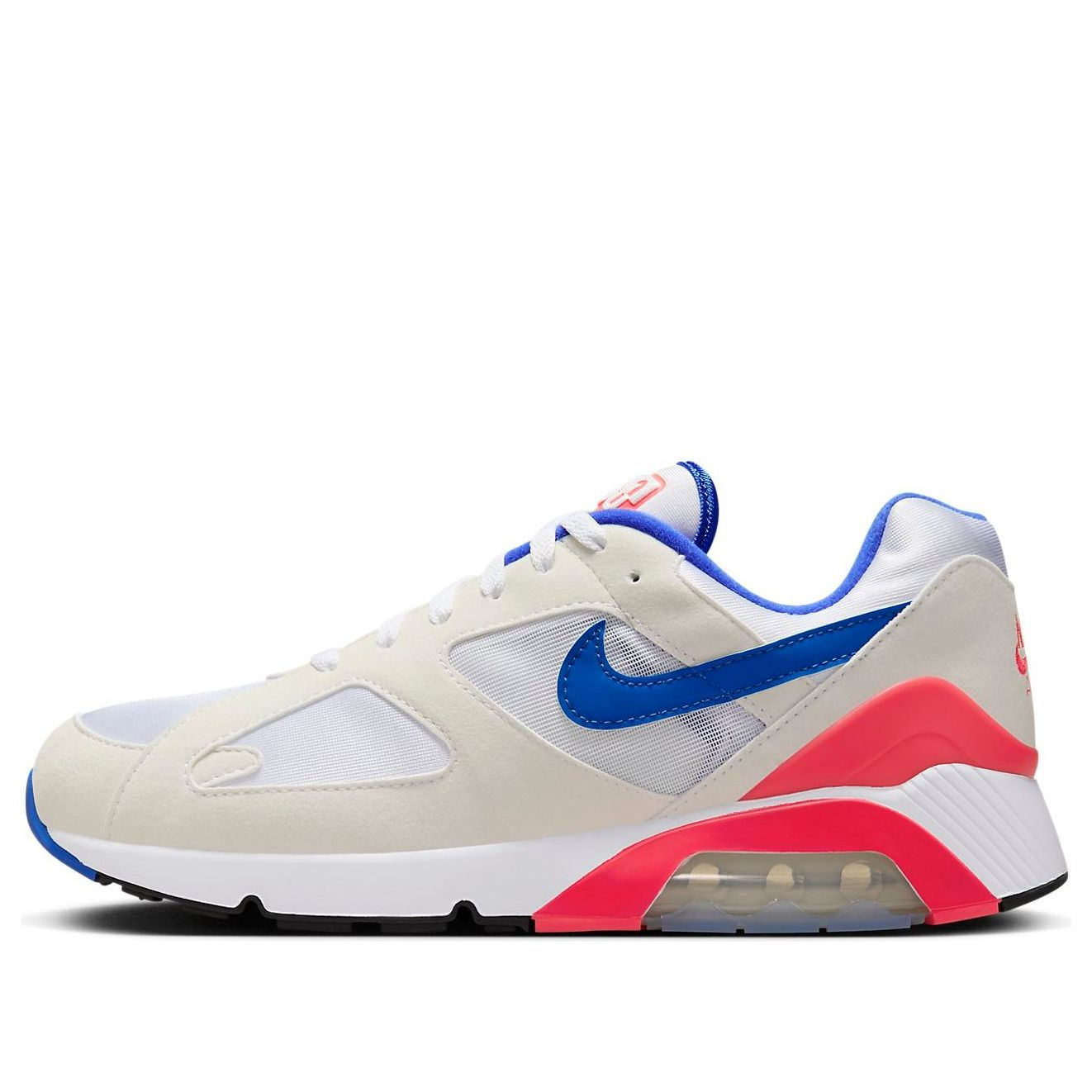 PRODUCT INFORMATION MODEL NO: FJ9259-100 RELEASE DATE: 2024-05-24 SERIES: Air Max NICKNAME: Ultramarine COLOR WAY: White/Multi-Color DESCRIPTION The Nike Air Max 180 'Ultramarine' 2024 is a retro running shoe that pays homage to the iconic OG colorway from the '90s. The upper features a white textile base with off-white suede overlays and a blue leather Swoosh. Bright red accents appear on the TPU heel counter, the 180 Air tongue tag, and the Nike Air branding embroidered on the back heel. The standout feature is the cushioning setup, which boasts 180 degrees of visible Air cushioning.