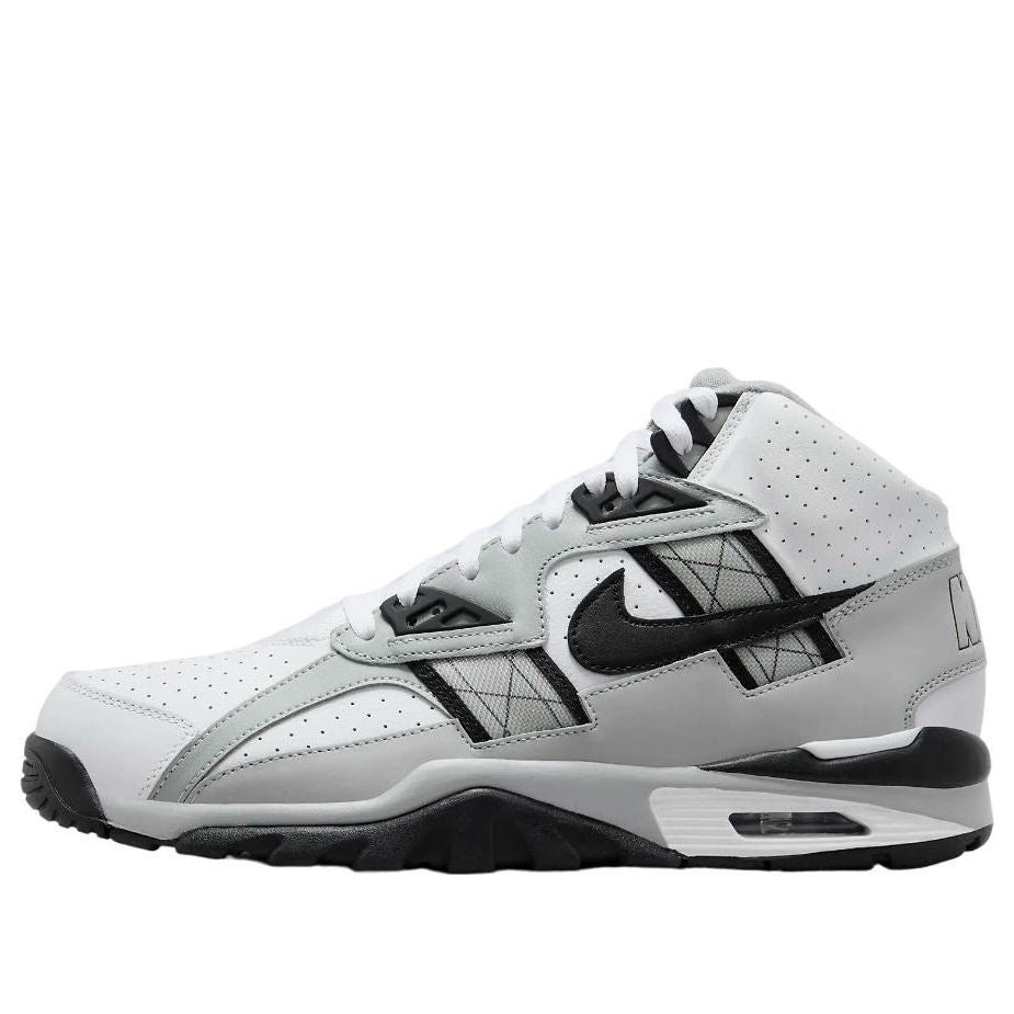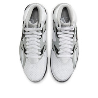 PRODUCT INFORMATION Model No: HJ9106-100 Closure: Lacing Release Date: 2024-08-20 Upper Material: Synthetic Leather Thickness: Regular Sole Colorway: White/Black/Light Smoke Grey Toe Type: Round Toe Upper: High Top Sole Material: Rubber Sole Color: grey Series: Air Trainer Sub Series: Air Trainer SC Nickname: Raiders Helmet Occasion: lifestyle
