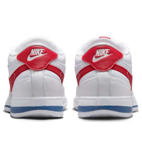 PRODUCT INFORMATION Model No: FJ4249-105 Closure: Lacing Release Date: 2025-01-22 Upper Material: Leather Thickness: Regular Sole Colorway: White/Varsity Red/Varsity Blue Toe Type: Round Toe Upper: Low Top Sole Material: Rubber Sole Color: white Series: Book Sub Series: Book 1 Nickname: Forrest Gump Occasion: basketball Devin Booker's Nike Book 1 "Forrest Gump" PE, inspired by the iconic Cortez, hits the court. This all-white sneaker features red accents and a classic blue midsole stripe, perfectly replicating the original design. A nostalgic tribute to a beloved film and sneaker classic.