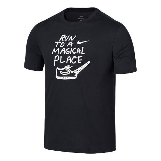 Nike DRI-FIT Running Quick Dry Breathable Athleisure Casual Sports Short Sleeve Black AO0651-010
