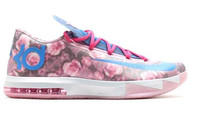 PRODUCT INFORMATION Model No: 618216-600 Closure: Lacing Release Date: 2014-02-28 Upper Material: Leather Thickness: Regular Sole Style: Sports Colorway: Pink/Blue Heel Type: Flat heel Toe Type: Round Toe Upper: Low top Sole Material: Rubber Sole Functionality: Slip-resistant/Lightweight Season: All Season Color: PINK Series: KD Sub Series: KD 6 Nickname: Aunt Pearl Occasion: basketball The Nike KD VI Supreme "Aunt Pearl" is a special edition shoe released in February 2014 to honor Kevin Durant"s late Aunt Pearl. The shoe features a pink floral print inspired by a robe she regularly wore, with the Kay Yow Cancer Fund ribbon on the tongue. Photo Blue complements the look throughout, including on the medial side wall, while tonal Air in the heel provides cushioning. This shoe is sure to be a collector"s item for any KD fan, and is a must-have addition to any sneaker collection.