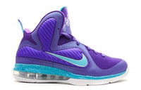 PRODUCT INFORMATION Model No: 469764-500 Closure: Lacing Release Date: 2012-03-30 Upper Material: Leather Thickness: Regular Sole Style: Sports Colorway: Pure Purple/GreenBlue/White Toe Type: Round Toe Upper: High top Sole Material: Rubber Sole Functionality: Slip-resistant/Lightweight Season: All Season Color: purple Series: LeBron Sub Series: LeBron 9 Nickname: Summit Lake Hornets Occasion: basketball Country Of Origin: CN The Nike LeBron 9 ‘Summit Lake Hornets’ offers a vibrant two-tone design inspired by LeBron James’ old AAU team. The shoe’s upper is constructed with seamless Hyperfuse and engineered textile wings, finished in Pure Purple with Turquoise Blue accents. A white heel badge on the back is printed with a Hornets logo, matched by the white rubber outsole underfoot.