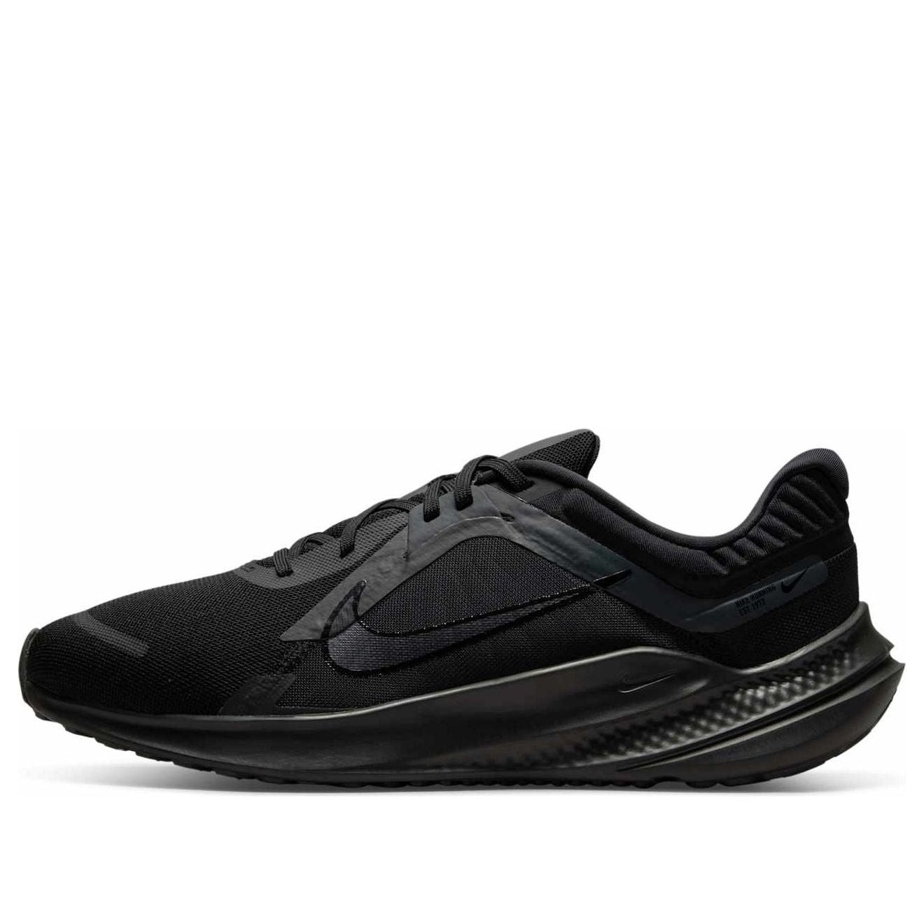 PRODUCT INFORMATION Model No: DD0204-003 Closure: Lacing Release Date: 2023-03-01 Thickness: Regular Sole Colorway: Black/Dark Smoke Grey Heel Type: Flat heel Toe Type: Round Toe Upper: Low Top Sole Material: Rubber Sole Color: black Series: Quest Sub Series: Quest 5 Nickname: Black Smoke Grey Occasion: running