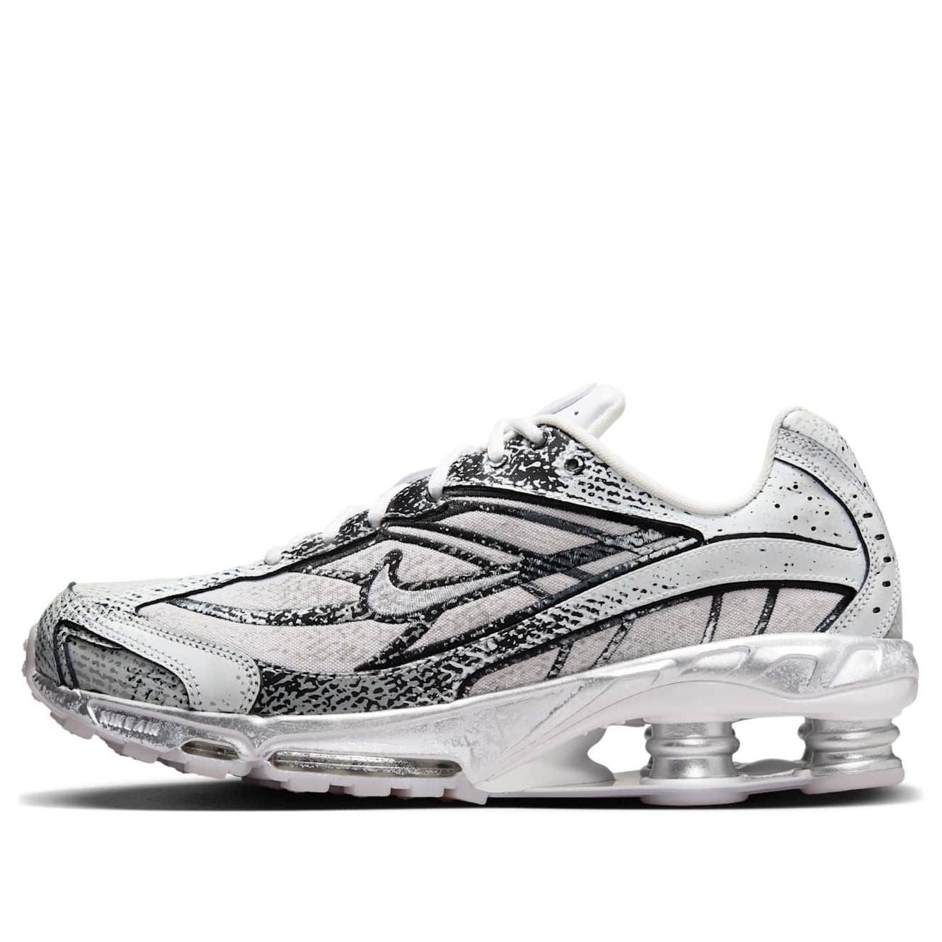 PRODUCT INFORMATION Model No: IB8174-100 Closure: Lacing Release Date: 2025-03-31 Upper Material: Mesh Thickness: Regular Sole Colorway: White/Metallic Platinum/Black/Flat Gold Toe Type: Round Toe Upper: Low Top Sole Material: Rubber Sole Color: silver Series: Shox Nickname: Metallic Platinum Occasion: lifestyle