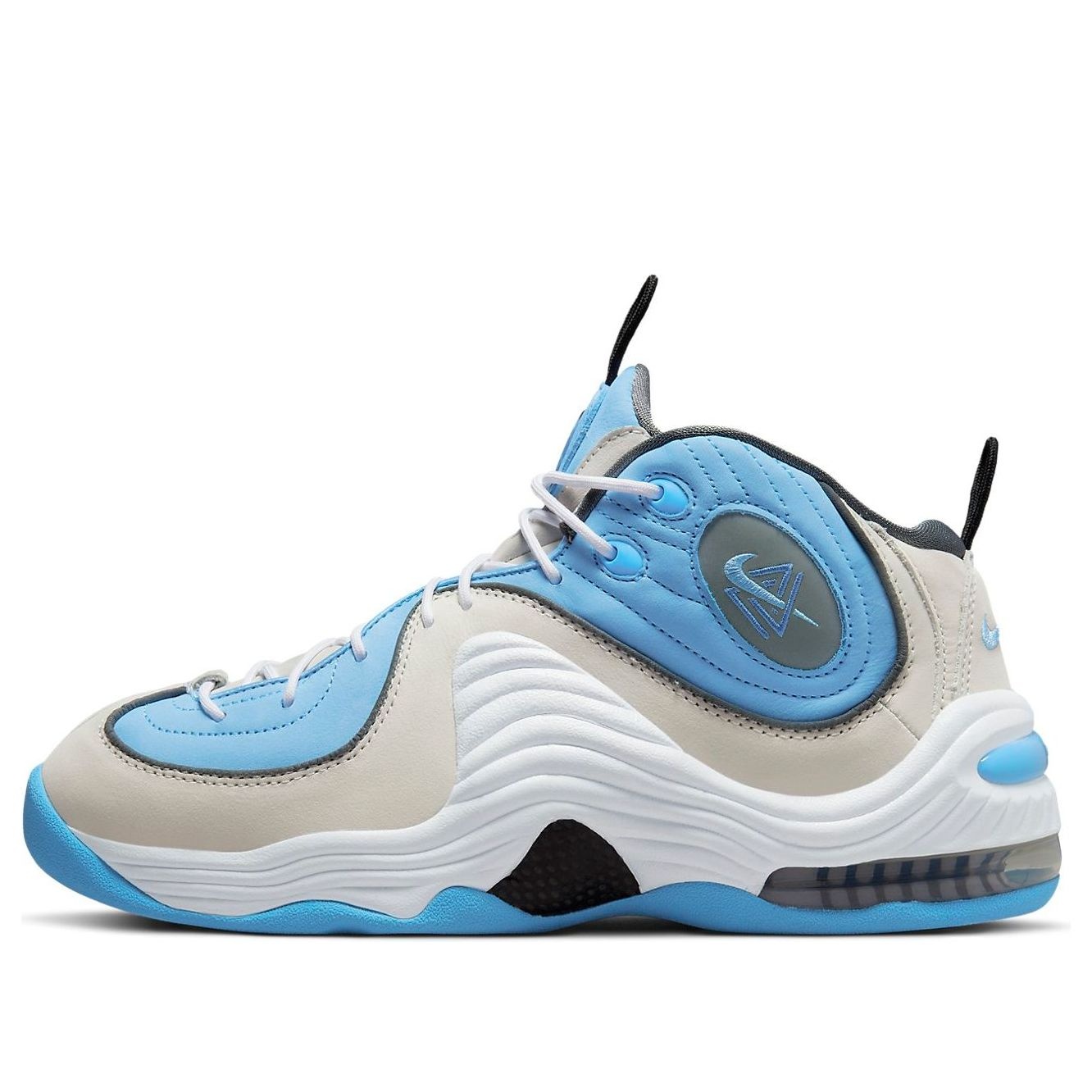 PRODUCT INFORMATION Model No: DM9132-100 Closure: Lacing Release Date: 2022-11-09 Thickness: Regular Thickness Colorway: GRAY/BLUE Heel Type: Flat heel Toe Type: Round Toe Upper: Low Cut Sole Material: Rubber Sole Color: blue Series: Air Penny Sub Series: Air Penny 2 Nickname: Playground - University Blue Occasion: basketball