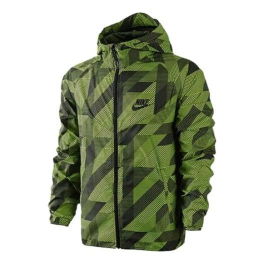 Nike Splicing Chest Brand Logo Geometry Pattern Printing hooded track Jacket Green 687564-702