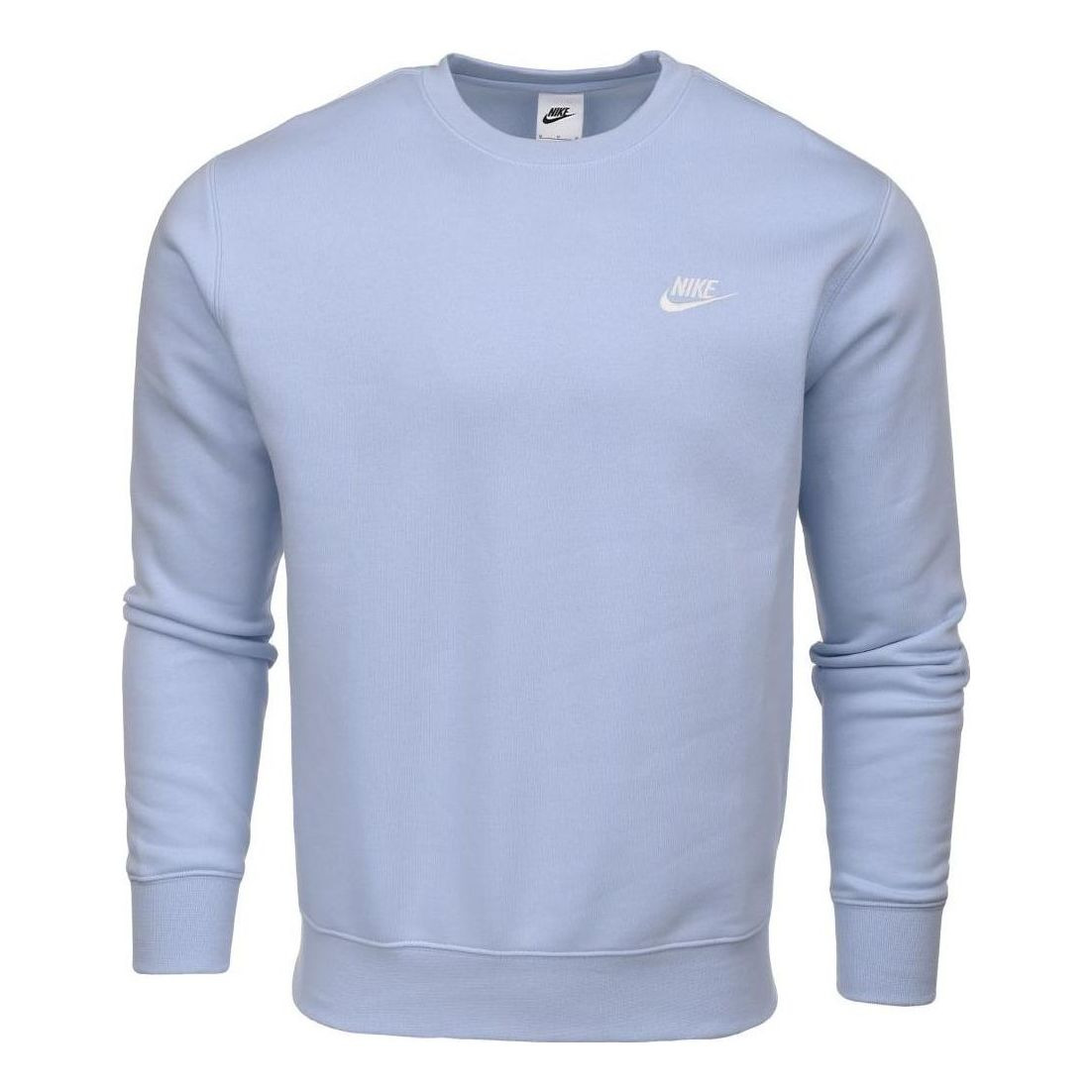 Nike Sportswear Club Fleece Solid Color Logo Embroidered Round Neck Long Sleeves Light Blue BV2662-5