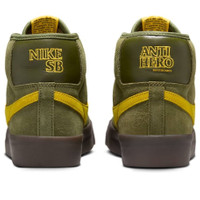 PRODUCT INFORMATION Model No: HM5838-300 Closure: Lacing Release Date: 2024-11-21 Upper Material: Suede Thickness: Regular Sole Colorway: Rough Green/Amarillo/Rough Green Toe Type: Round Toe Upper: Mid Top Sole Material: Rubber Sole Color: green Series: Blazer Sub Series: SB Blazer Nickname: Rough Green Amarillo Occasion: skateboarding The Antihero x Nike SB Zoom Blazer Mid Pro GT is a collaboration that blends Antihero's gritty skateboarding style with Nike SB's performance design. This rugged green suede shoe features a canvas lining, matching laces, and a co-branded tongue tag. A vibrant yellow Swoosh adds a pop of color, while the translucent outsole reveals a unique Antihero graphic. The shoe offers a blend of style and functionality, perfect for skaters and sneaker enthusiasts alike.