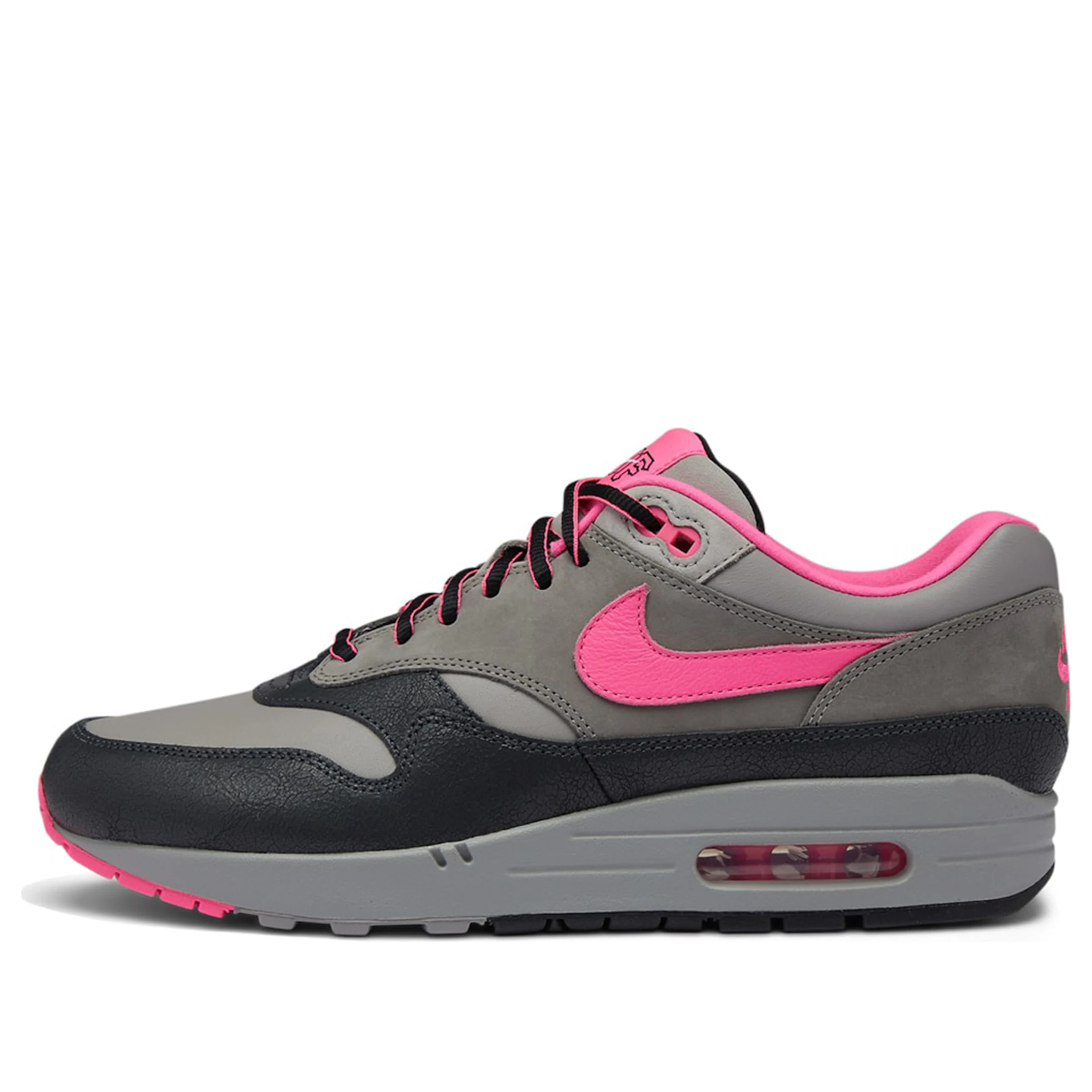PRODUCT INFORMATION MODEL NO: HF3713-003 RELEASE DATE: 2024-06-22 SERIES: Air Max NICKNAME: Pink COLOR WAY: Anthracite/Pink Pow/Medium Grey/Flat Pewter DESCRIPTION The Nike Air Max 1 "Pink Pow is a collaborative effort between Nike and HUF, a skateboard apparel brand. This eye-catching shoe features a unique colorway of anthracite, pink, medium grey, and flat pewter. Released in June 2024, it boasts a classic silhouette with a mix of materials. The upper combines breathable mesh with stylish suede overlays for a touch of premium flair. The visible Air Max unit in the midsole offers cushioning and a glimpse of Nike technology. This special edition Air Max 1 is perfect for fans of both brands and those who love a distinctive look.