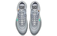 PRODUCT INFORMATION Model No: AJ4585-101 Closure: Lacing Release Date: 2018-10-17 Upper Material: Leather Thickness: Regular Sole Style: Sports Colorway: Wolf Grey/White/Menta Heel Type: Flat heel Toe Type: Round Toe Upper: Low Top Sole Material: Rubber Sole Season: All Season Color: grey Series: Air Max Sub Series: Air Max 97 Nickname: Menta Occasion: lifestyle The Nike The 10 Air Max 97 "Menta" shoe features a translucent textile upper in shades of grey, white, and green. The zigzag stitching and Virgil Abloh's signature Off-White text add a touch of contrast to the shoes' overall look. The highlight of the shoes is the Swoosh, which fades from green to blue to red. The smoky grey rubber outsole provides durability and traction.