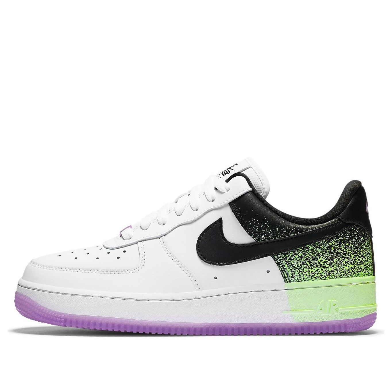 PRODUCT INFORMATION MODEL NO: CZ8097-100 RELEASE DATE: 2020-07-31 SERIES: Air Force STYLE: Street Style SEASON: All Season CLOSURE: Lacing SOLE MATERIAL: Rubber Sole TOE TYPE: Round Toe HEEL TYPE: Flat heel COLOR WAY: WhiteGreenPurple