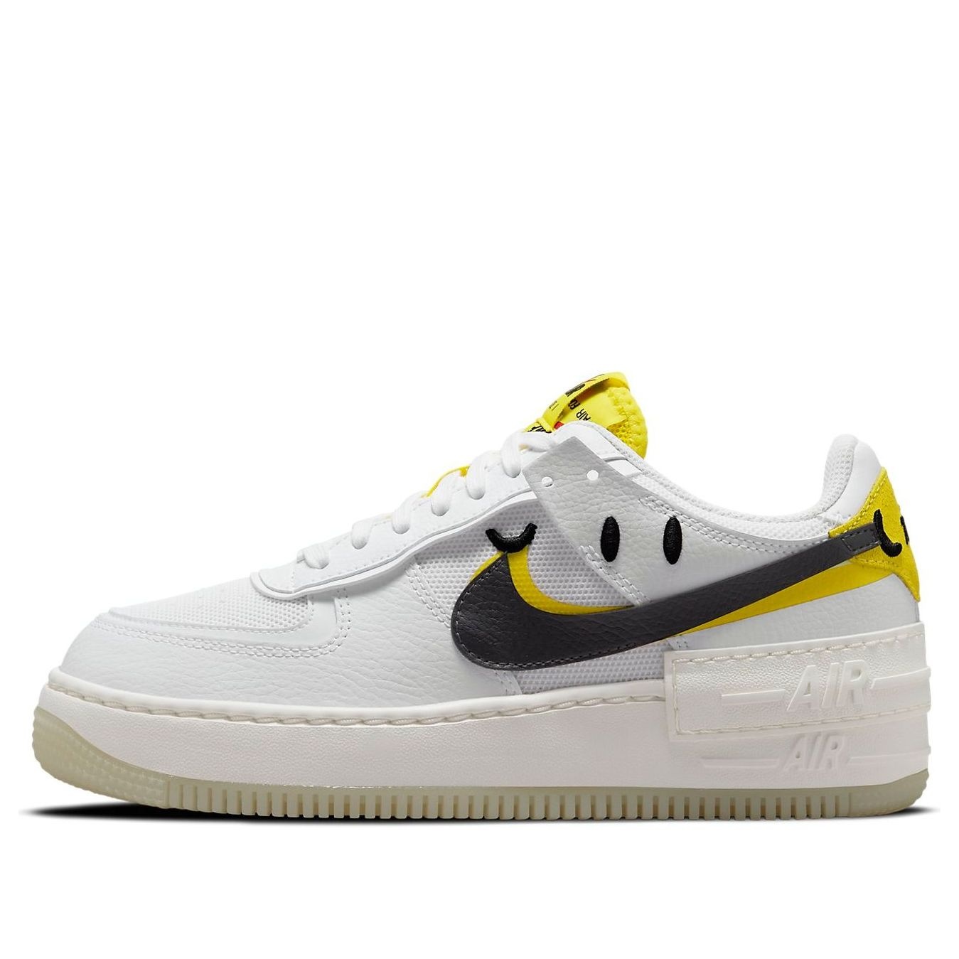 PRODUCT INFORMATION Model No: DO5872-100 Closure: Lacing Release Date: 2021-11-28 Upper Material: Synthetic Leather/Fabric Style: Hip Hop/Street Style/Trendy Colorway: White/Yellow/Black Heel Type: Flat heel Toe Type: Round Toe Sole Material: Rubber Sole Season: All Season Color: white Series: Air Force Sub Series: Air Force 1 Shadow Nickname: Go The Extra Smile Occasion: lifestyle