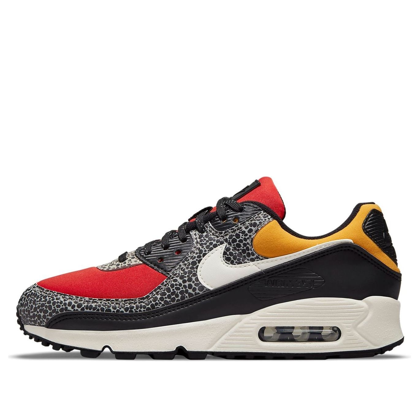 PRODUCT INFORMATION Model No: DC9446-001 Closure: Lacing Release Date: 2021-11-22 Upper Material: Suede/Fabric Style: Sports Colorway: Black/Chile Red/Pollen/Phantom Heel Type: Thick bottom Toe Type: Round Toe Sole Material: Rubber Sole Season: All Season Color: red Series: Air Max Sub Series: Air Max 90 Nickname: Safari Occasion: lifestyle