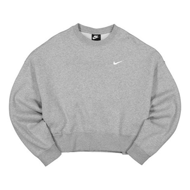 (WMNS) Nike Casual Sports Logo Round Neck Fleece Hoodie light grey Gray CK0168-063
