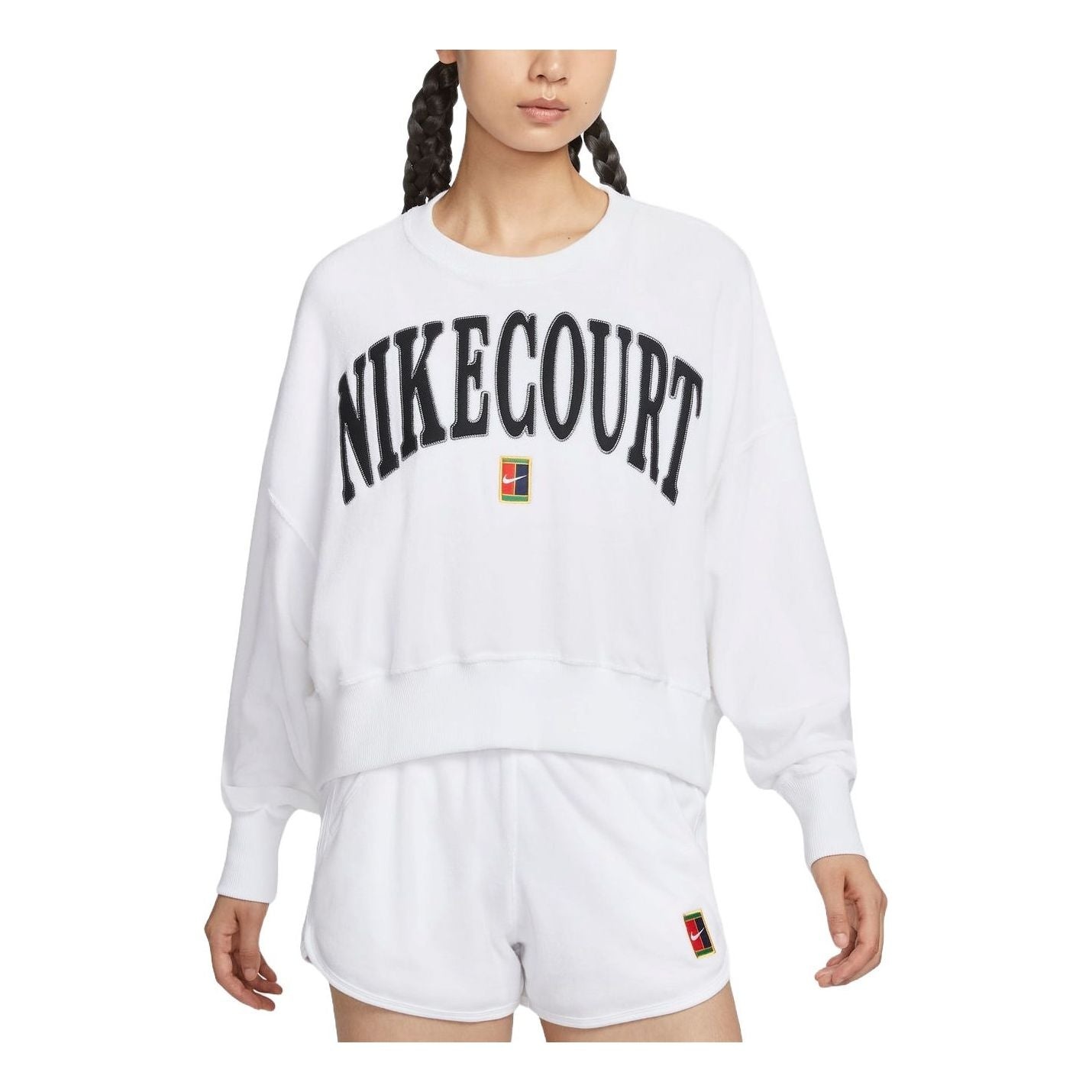 (WMNS) Nike Court Heritage Over-Oversized Crewneck Graphic Tennis Sweatshirt Asia Sizing 'White' FQ2